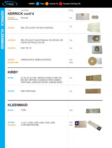 - Packet of 5 paper dust bags for Kirby Traditional vacuum cleaners