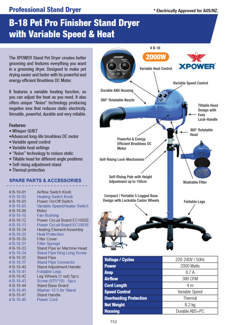 The Stand Adjustment Handle is an essential accessory for B-18 / XPOWER pet dryer stands - built to let you smoothly adjust and securely lock the stand’s height and angle for safe and ergonomic grooming sessions. Whether you run a busy pet salon or groom pets at home, this handle lets you fine-tune the stand height with ease, then tighten firmly so the dryer stays stable even during powerful airflow. Designed for frequent professional use, the durable handle offers reliable performance session after session - ensuring your dryer remains steady and correctly positioned. With the Stand Adjustment Handle, you get hands-free convenience, better control over airflow direction, and reduced fatigue for groomers. It’s the ideal upgrade or replacement part for any stand dryer system, helping maintain safety, comfort, and efficiency whether you’re drying a small puppy or a large breed.