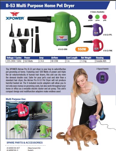 CLEANSTAR - XPOWER 540W PET BLOWER/DRYER GREEN