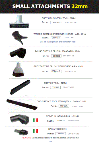 - For all vacuum cleaners that use standard 32mm tools and attachments