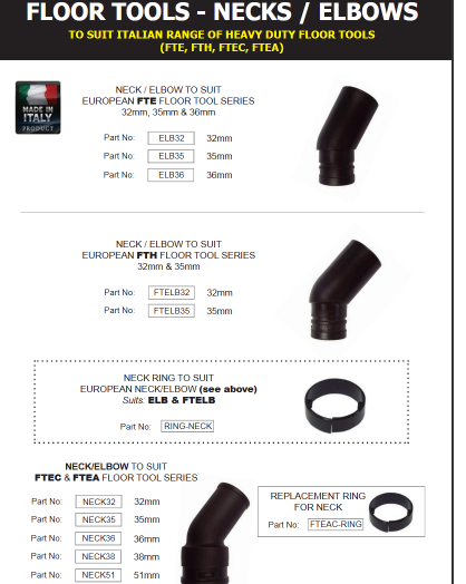 - Use to repair all FTE series Eurpean floor tools
