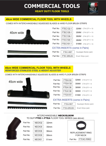 - All Wet & Dry Commercial vacuum cleaners that use 35mm attachments