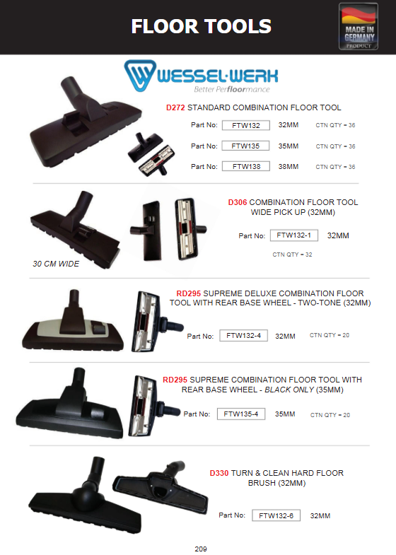 - Single 35mm Wessel-Werk RD295 Supreme Combination Floor Tool