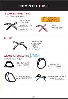 • Complete vacuum hose assembly for a wide range of backpack and canister vacuums