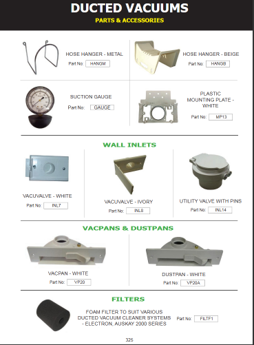 • Suits all ducted vacuum cleaner systems