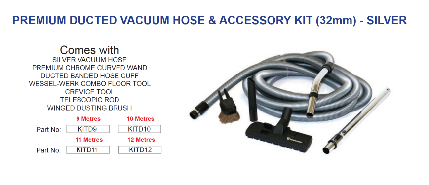 - 12 Metre 32mm Ducted Vacuum Hose & Accessories Kit