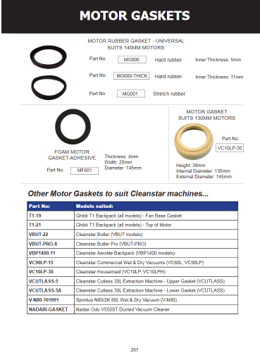 • This gasket suits vacuum motors with a 145mm fan base diameter