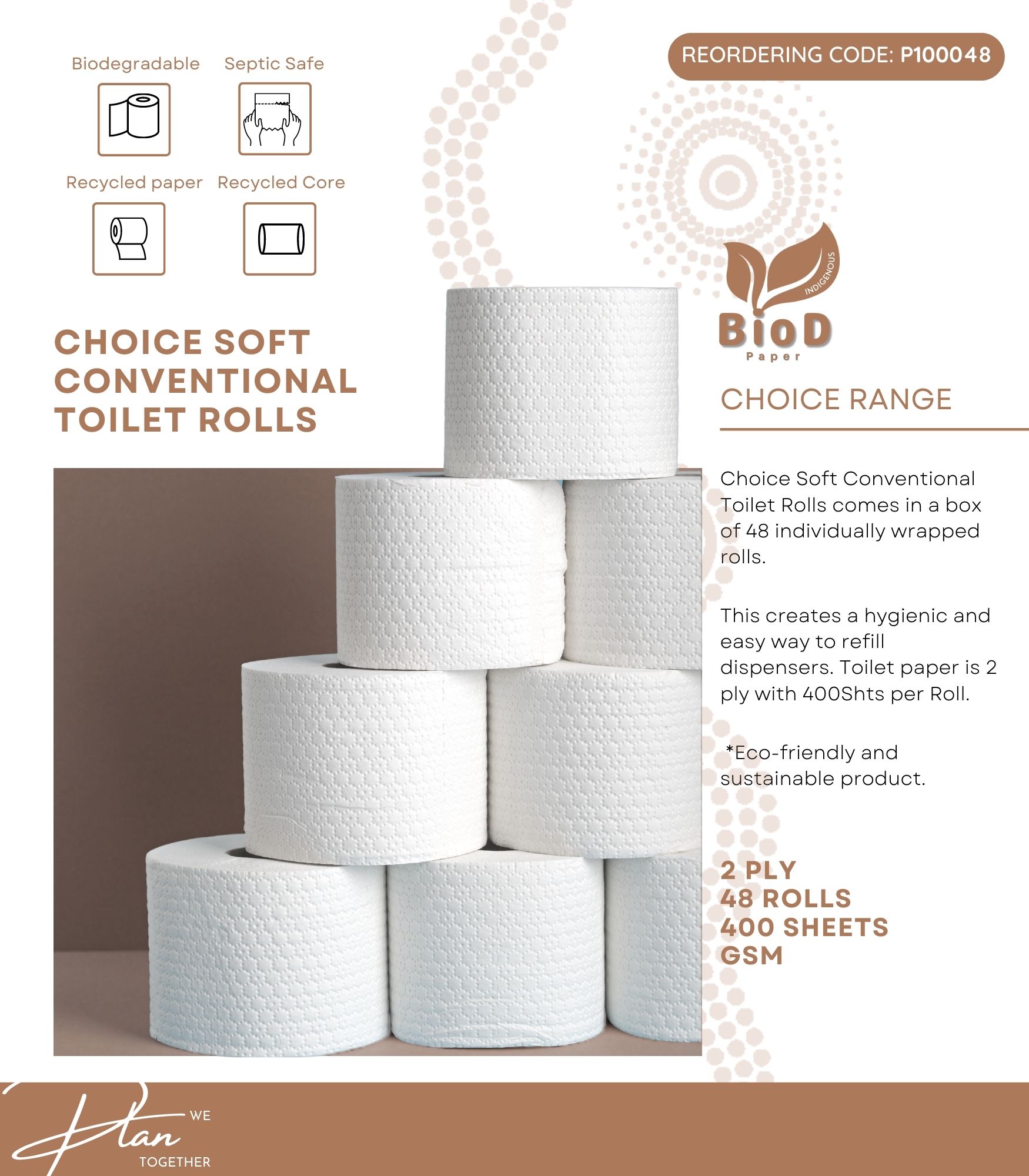 (INDIGENOUS OWNED) BIOD - DELUXE CONVENTIONAL TOILET ROLLS 2PLY 400SHEET X 48 10CMX10CM