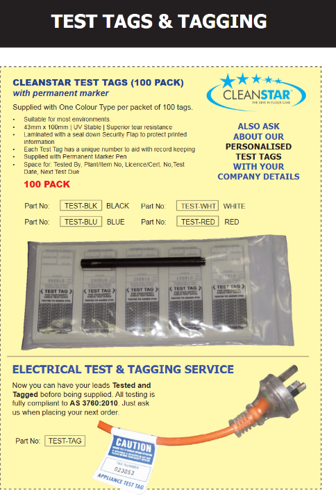 • Each Test Tag Has a Unique Number To Aid With Record Keeping