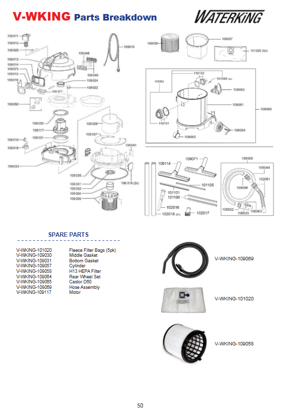 The Middle Gasket for WaterKing (to suit V-WKING) is a genuine spare part for the Sprintus / Cleanstar WaterKing 30 Litre Wet & Dry Vacuum Cleaner. Built to the original specification (SKU: V-WKING-109030), this middle seal plays a vital role in maintaining airtight integrity within the vacuum canister, preventing leaks, and preserving optimal suction performance.