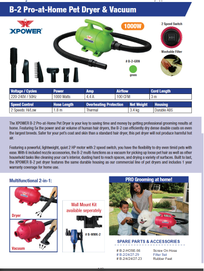- XPOWER 1000 Watt Pro-at-Home Pet Dryer & Vacuum (B-2)