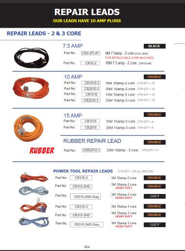 CLEANSTAR – POWER TOOL REPAIR LEADS (10AMP 2SCOR ORANGE - 3M)