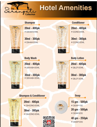 • These luxury hotel guest amenities are part of The Serengeti Collection by Cleanstar