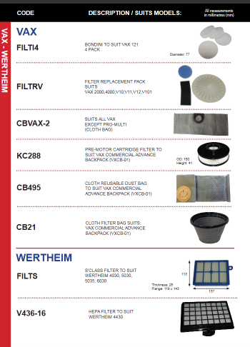 CLEANSTAR - ELECTROLUX, VOLTA AND WERTHEIM WASHABLE VACUUM CLEANER HEPA FILTER SYSTEM
