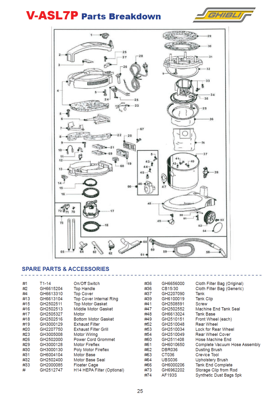 · Fits: Ghibli ASL7P Wet & Dry Vacuum Cleaner