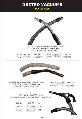 - Replacement ducted vacuum cleaner hose