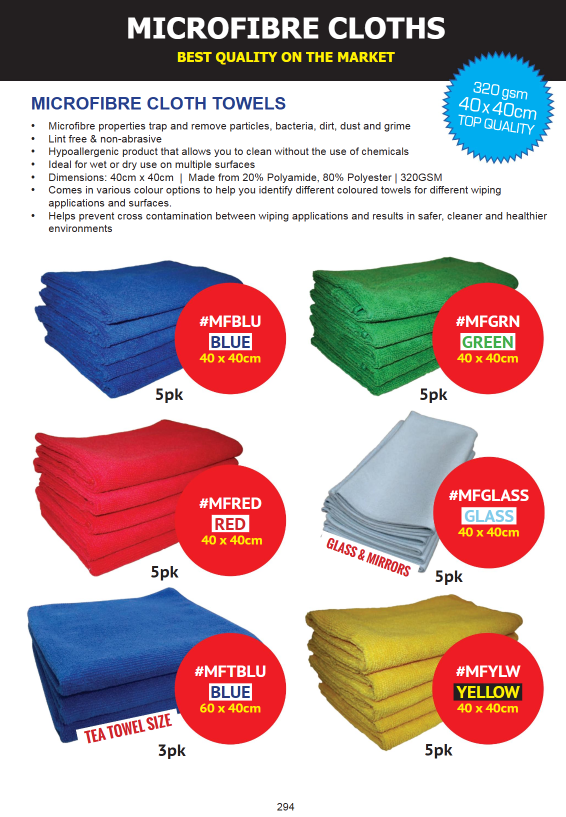 - 5-pack of Red Microfibre Cloths (commonly used in bathroom areas)