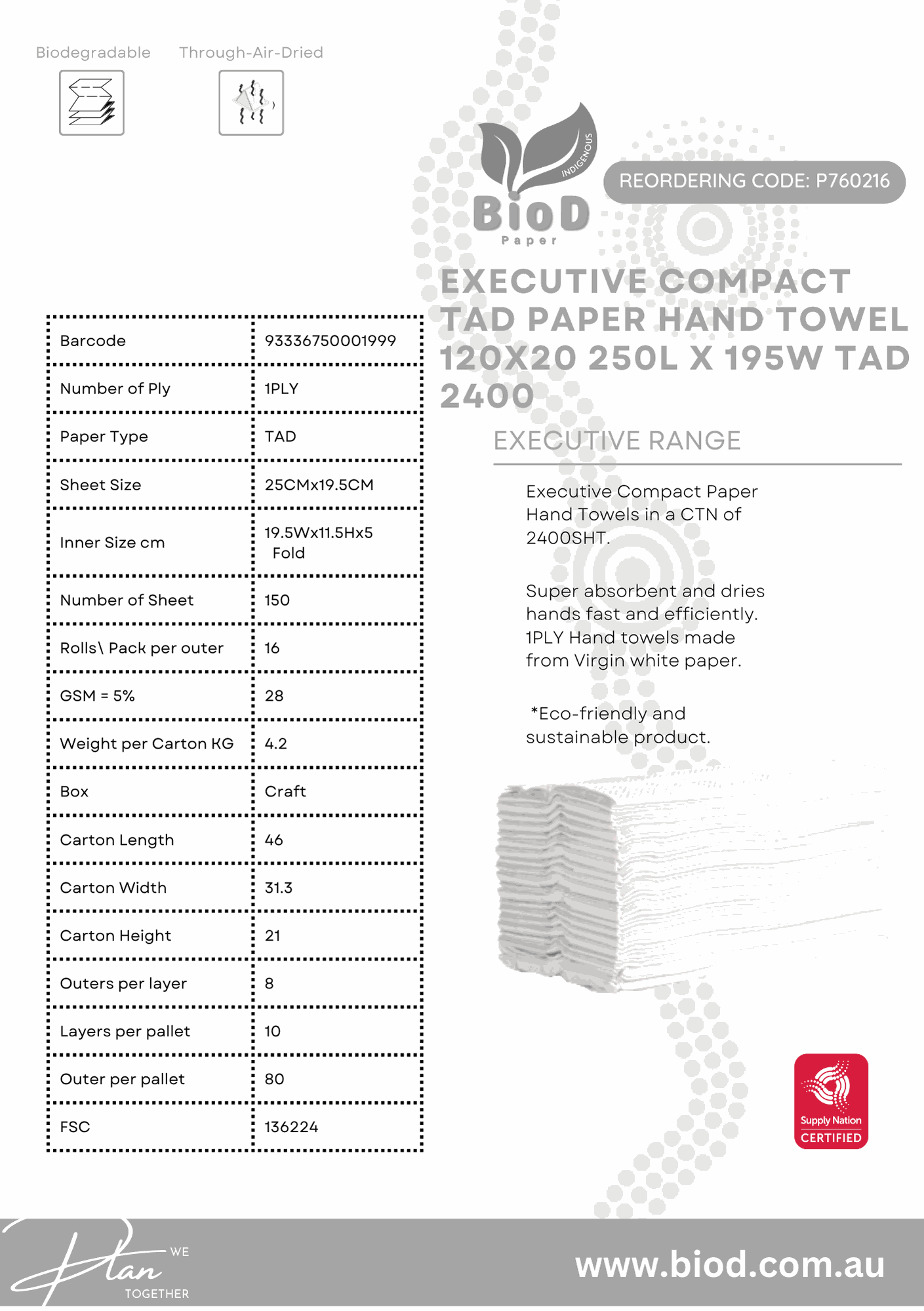 (INDIGENOUS OWNED) BIOD - EXECUTIVE TAD COMPACT PAPER HAND TOWEL