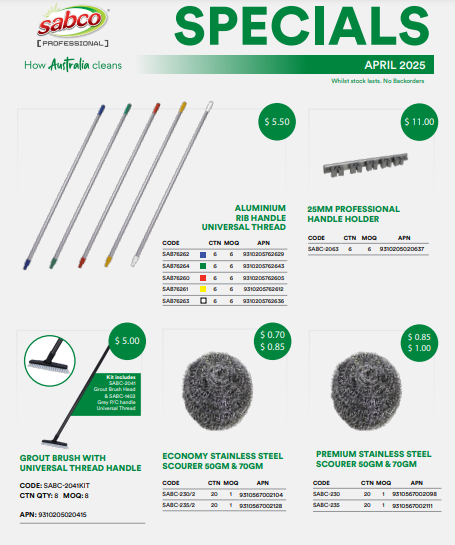 Sabco Professional offers a comprehensive range of high-quality products for commercial and professional use. Our dedication to excellence is evident, in particular in our traditional mop handles range, featuring the innovative Aluminium Handle with Universal Thread. This dedication ensures durability, reliability, and exceptional performance.