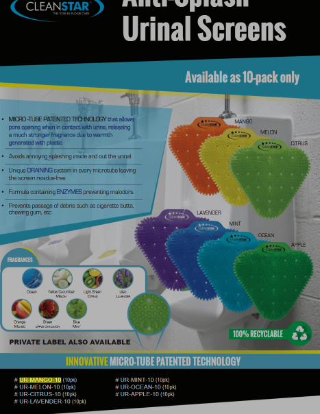 Keep your restrooms fresh and splash-free with CLEANSTAR Anti Splash Urinal Screens. This 10-pack features long-lasting mango fragrance and anti-splash design, ideal for high-traffic commercial bathrooms. Improves hygiene, controls odor, and enhances user experience.