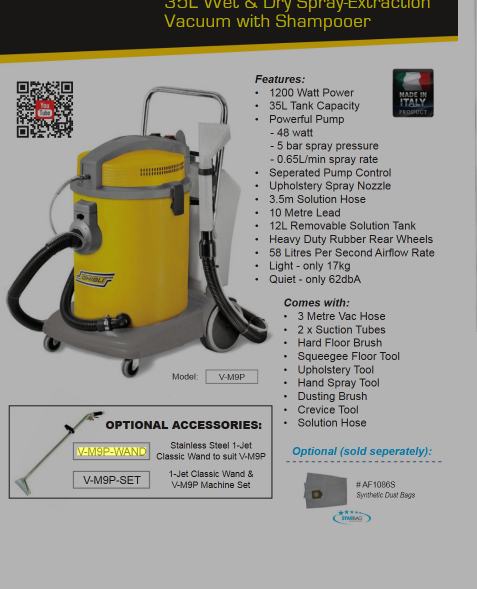 • Compatible with Ghibli M9P carpet extractors