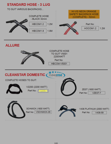 CLEANSTAR-COMPLETE HOSE FOR V2200