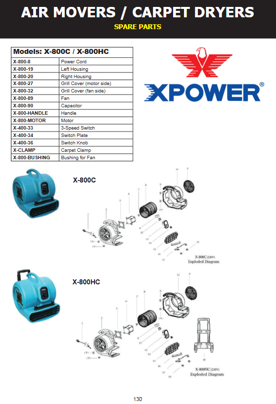 The Left Housing for X‑800C / X‑800HC is a high-quality OEM replacement part precisely engineered for the 800‑series air movers from Cleanstar / XPOWER. This left-side housing section restores the structural integrity of the air mover’s outer shell, protecting key internal components such as the motor, capacitor, and fan from dust, debris, and damage - while maintaining the rugged design built for heavy-duty drying and restoration tasks.